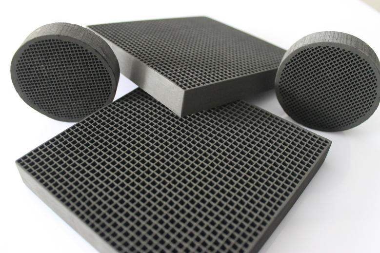 , 研制開發出來的新的炭產品 , 其結構為多孔蜂窩狀 , 孔隙發達 , 比表面積大 , 流體阻力小 ,